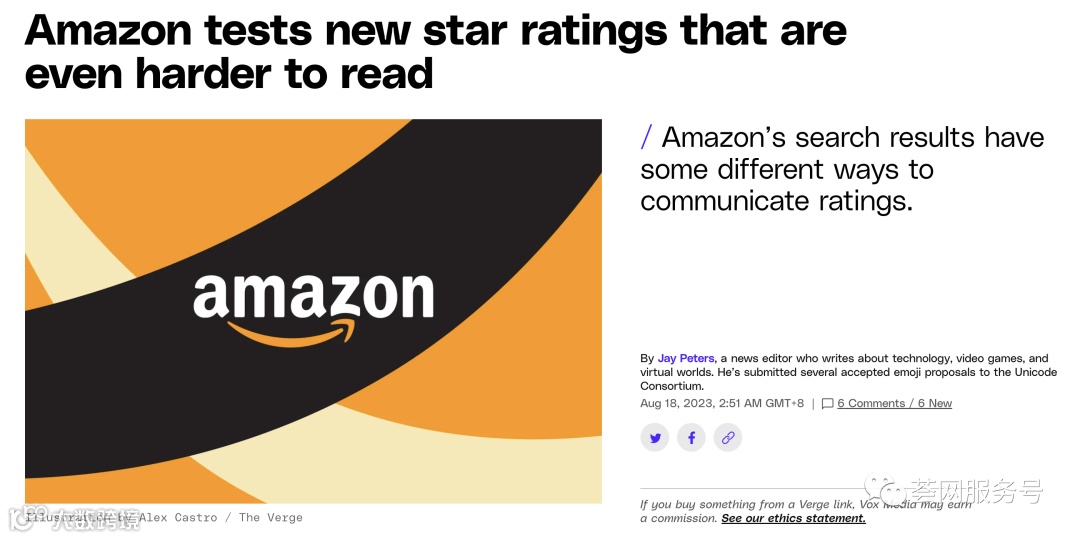 商品星级不再用亚马逊的橙色星标显示,取而代之的是用具体数字显示星级