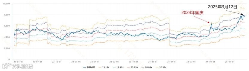 如果现在实际股价线在这五条线的最上方,说明市场给的估值比历史都高,可能太贵了;如果在最下方,说明比历史都便宜,性价比较高。如果处于五根线中间,那么需要结合市场环境“具体情况具体分析”。
