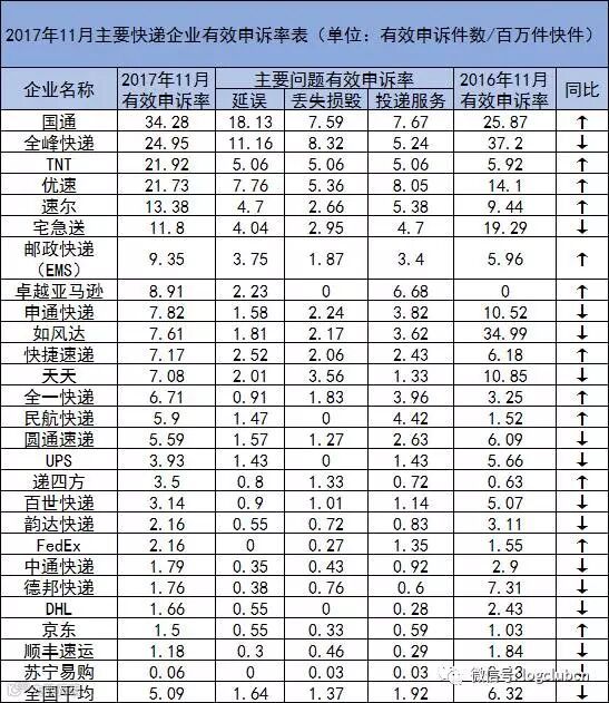 11月快递红黑榜出炉:国通、全峰快递、TNT申诉率较高