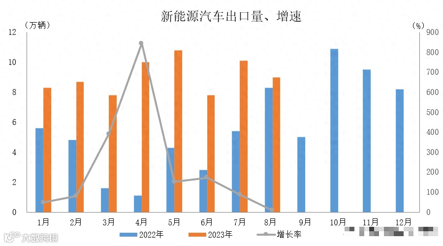 2023年8月,新能源汽车出口9万辆,环比下降11.2%,同比增长8.1%;1-8月,新能源汽车出口72.7万辆,同比增长1.1倍。
