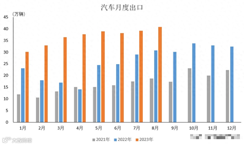 8月汽车企业出口40.8万辆,环比增长3.9%,同比增长32.1%