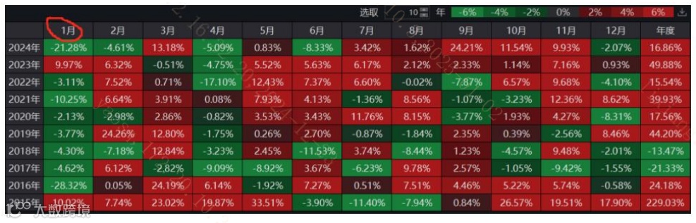 与之相对,小微盘股票或将面临较大压力。给大家介绍一只代表指数——万得微盘股指数,在过去10年间,有8年时间万得微盘股指数在每年的1月份都是下跌的。