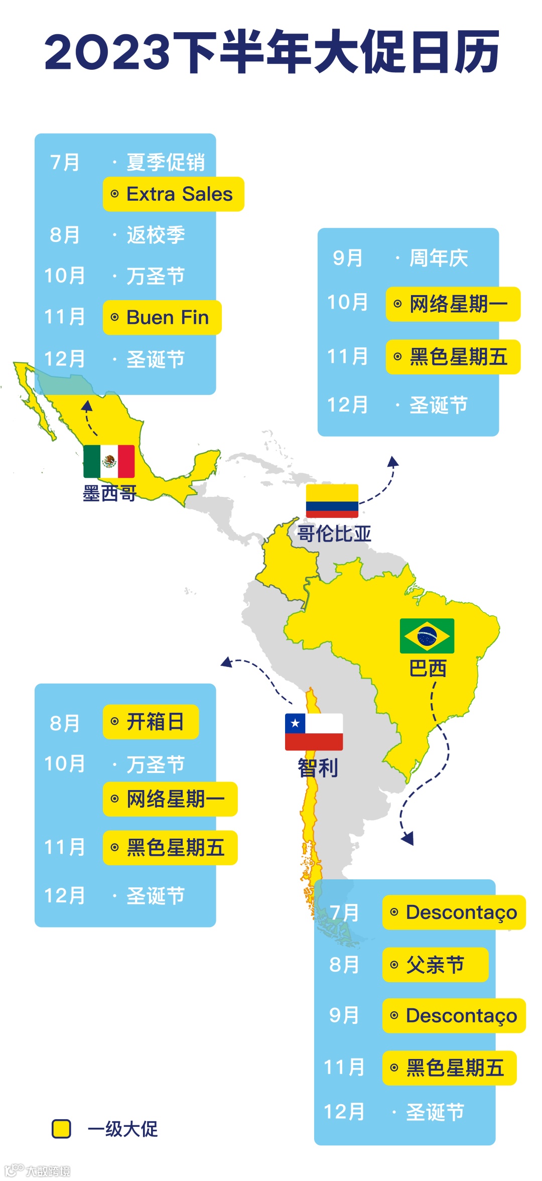 除了一二级大促,当地的传统节日也是刺激消费者下单的重要节点。拉美各个市场的下半年云集了众多传统节日如:万圣节、父亲节、圣诞节,建议您提前根据当地传统文化和流行趋势布局,抢占节假日流量,借势增长!