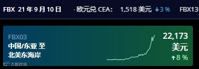 9月9日,达飞轮船宣布暂停在全球范围内的所有即期运费上调,立即生效,直至明年2月1日。