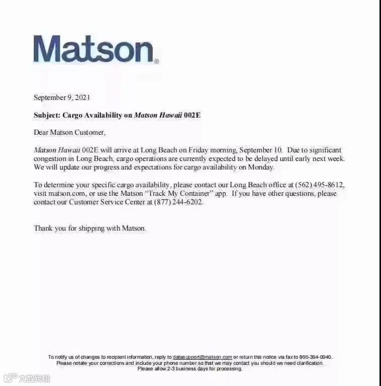 连“海运贵族”美森快船都不得不发出拥堵通知:长滩港也陷入拥堵了,后续进港、拆柜、提柜和还柜运转时效将有所影响。