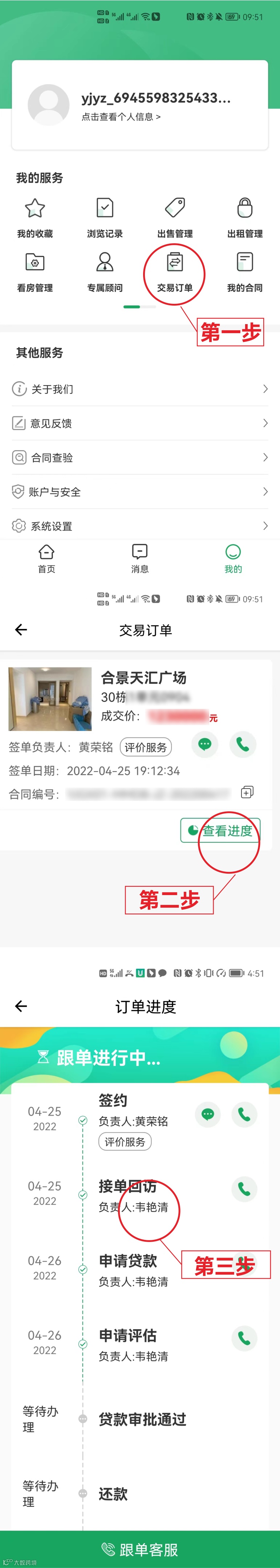(查找专属客服路径:优居找房APP→我的→交易订单)