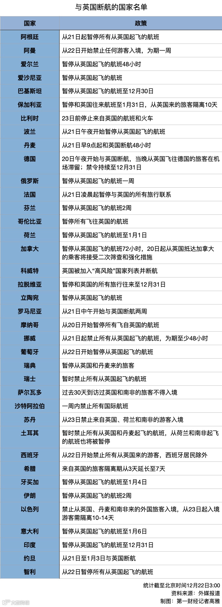 受此影响,多国相继宣布关闭边境、停飞往返英国航班等措施,应对新冠病毒新变种。截至北京时间12月22日,已有近40个国家不同程度地与英国切断航线。