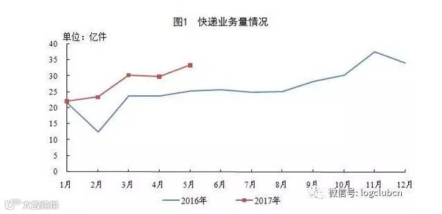 42017年5月快递行业大数据出炉:业务收入累计1761.3亿元