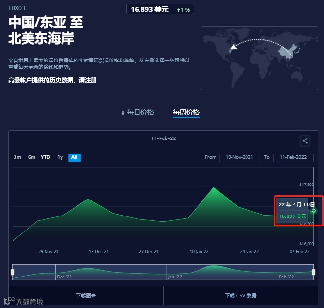 受中国春节假期影响,外贸工厂及出口商全面停工,出口货物放缓,美国海运上周价格回落,预计3月会再次回涨。