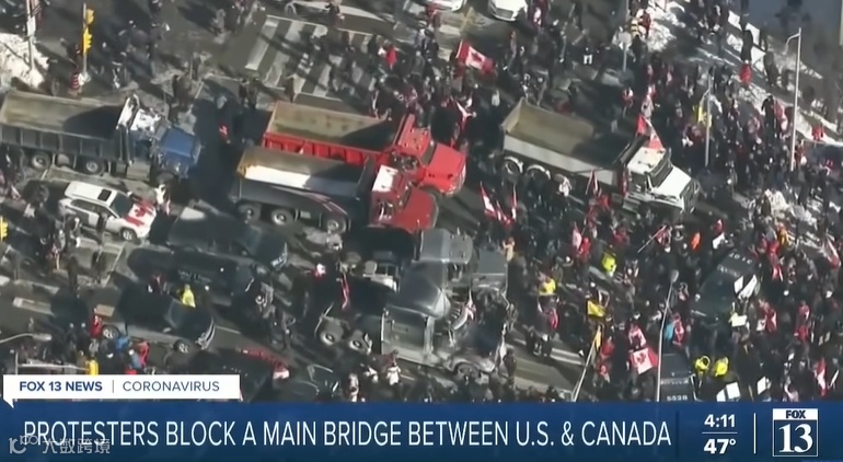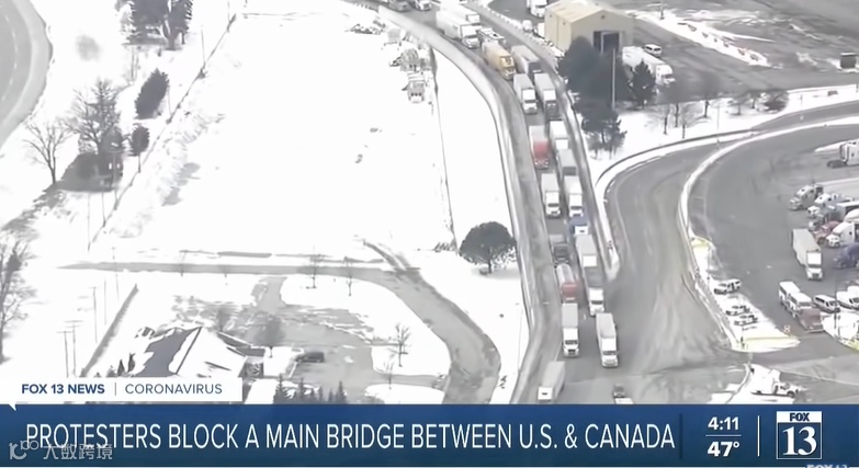 该桥是北美最繁忙的过境通道,封锁影响了美加之间27%的贸易运输。受到抗议活动影响,另外几个美加过境点目前也处于关闭状态。