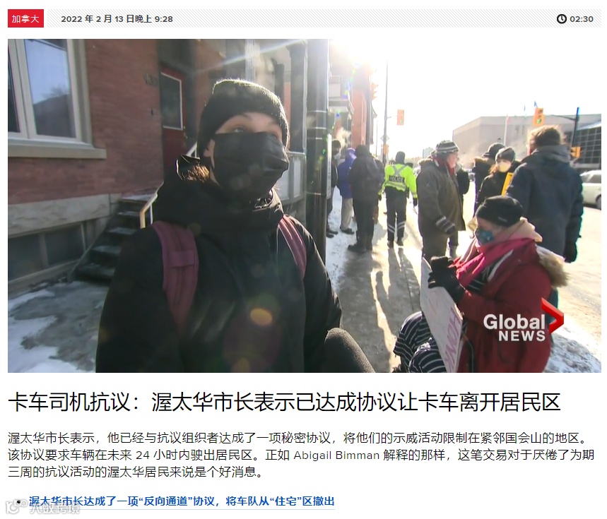 1月15日,加拿大政府宣布一项新抗疫规定,要求来往加拿大和美国的卡车司机在入境加拿大时出示新冠疫苗接种证明,加拿大部分卡车司机反对,组成车队进行抗议。
