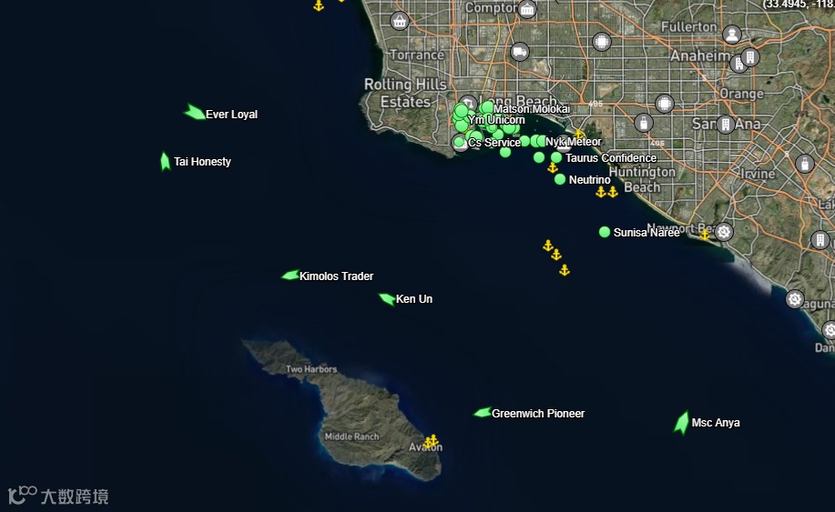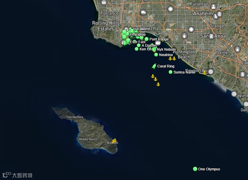 2021年10月20日 LA/LB港口集装箱船分布图 👇