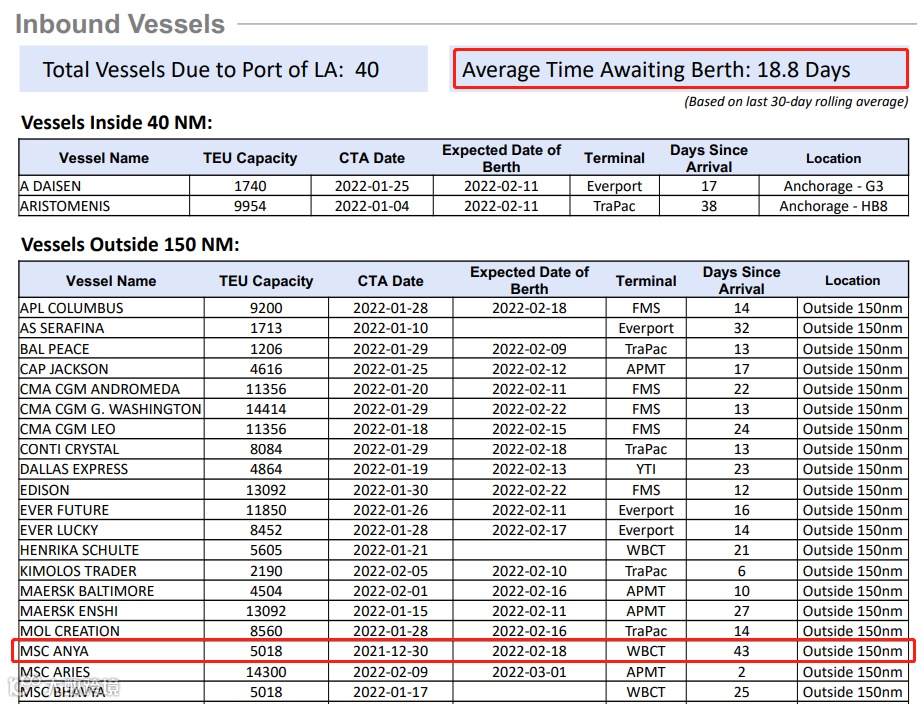 2022年2月12日 LA/LB港口集装箱船分布图 👆