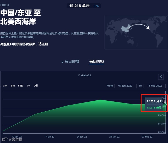 根据FBX最新数据,节后亚洲到美西每FEU的海运费用是15218美元,到美东为16893美元,价格有回落,但仍保持高位。