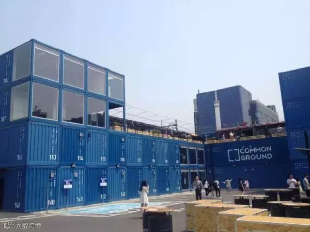 4月,来自韩国时尚企业KOLON的堪称全球最大型的集装箱购物中心Common Ground隆重开幕。这家名为Common Ground四层的混合式购物中心,位于建国大学附近,总共由 200个蓝色货柜所堆砌而成。中间的广场将整个空间分成了 Street Market 和 Market Hall,左右两边分别售卖男女装的区域。两个区域均有三个楼层,底下的 1,2 层都以服饰为主,而第 3 层则是观光台以及餐厅等。