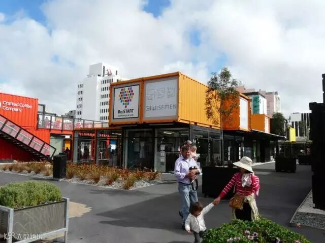 2011 年,政府为尽快恢复新西兰南岛克赖斯特彻奇中央商业区的震后正常生活,修建了由64个集装箱改建而成的临时购物中心,直到现在,嫩绿、鲜黄、粉橙等不同颜 色、不同风格的集装箱样式的小店还在不断发展壮大,成为基督城重建复苏进程中最具想象力的动人一页。在这里购物,除了琳琅满目的商品,你还可以感受到这座 城市在灾难中的乐观的力量,这种感触远远超过了购物本身的意义。