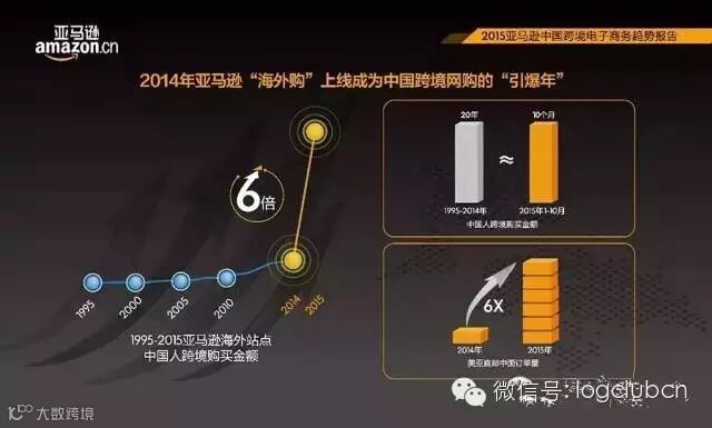 报告指出,2015年,中国消费者在亚马逊全球站点购物花费总额同比2014年增长了六倍多;仅2015年1至10月,中国消费者在亚马逊海外站点的购物花费总额已经相当于过去20年的总和。