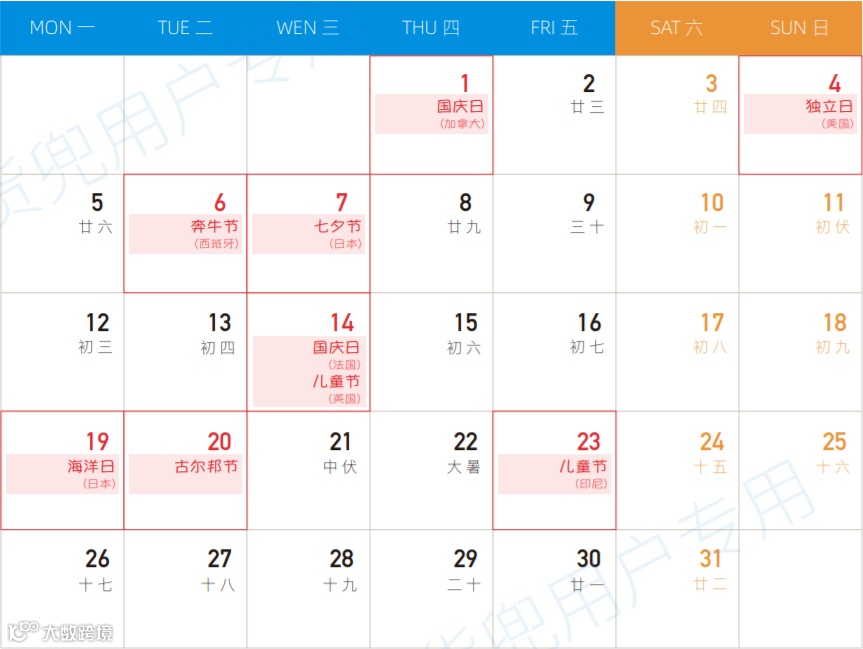 七月全球营销热点预告 请您提前备货