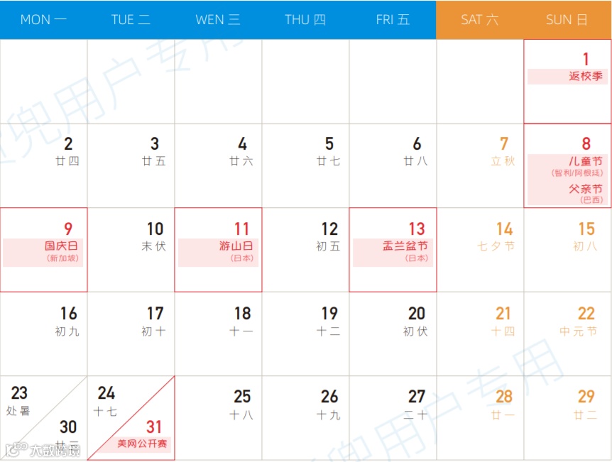 八月全球营销热点预告 请您提前备货