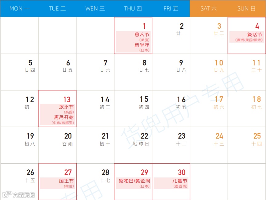 四月全球营销热点预告 请您提前备货