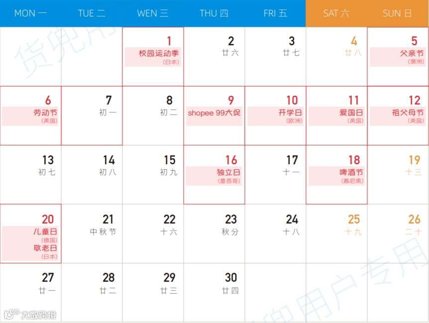 九月全球营销热点预告 请您提前备货