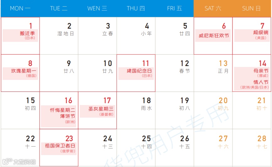 二月全球营销热点预告 请您提前备货