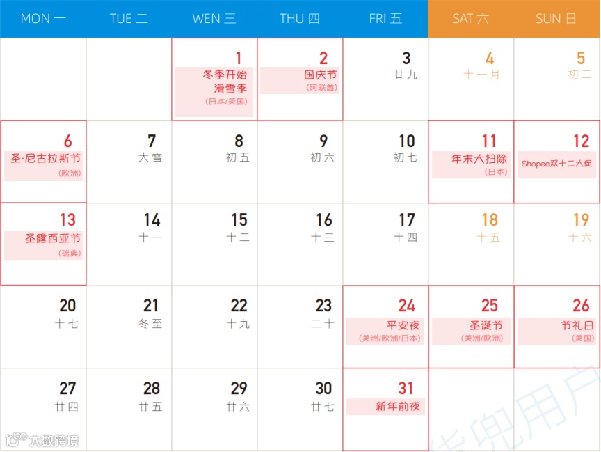 十二月全球营销热点预告 请您提前备货