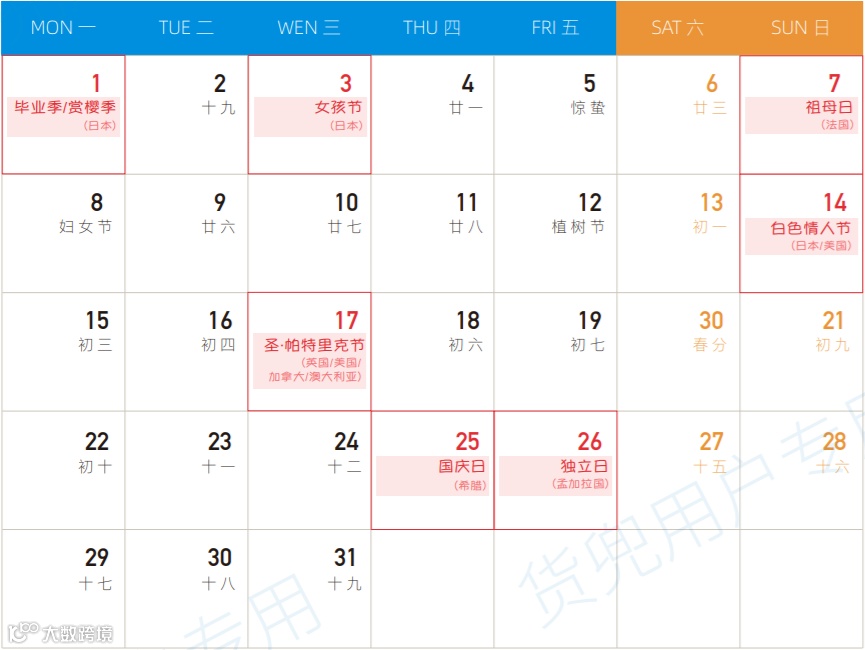 三月全球营销热点预告 请您提前备货