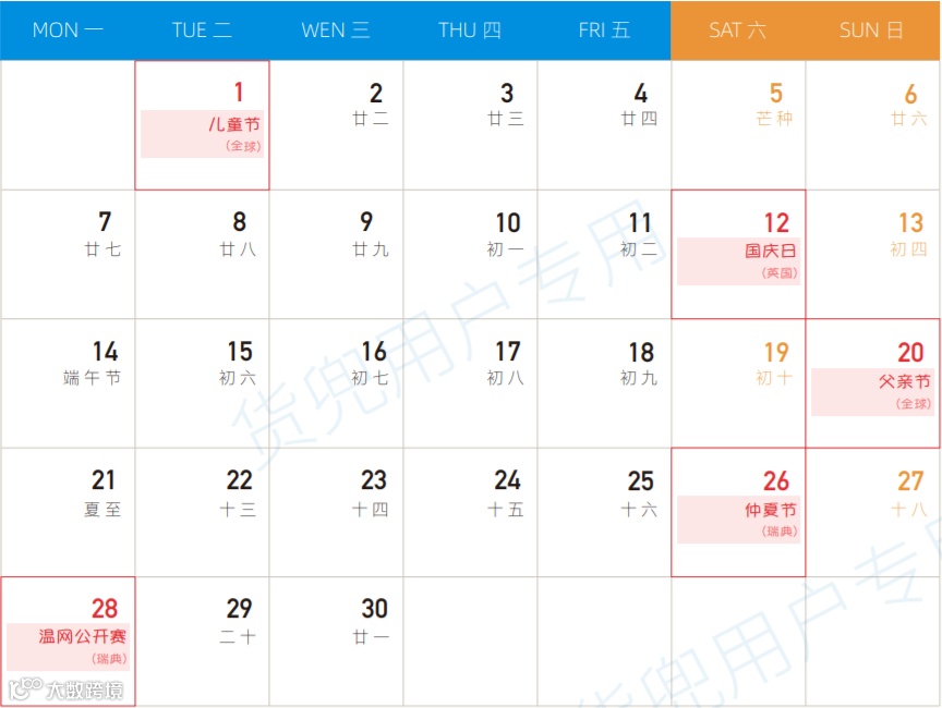 六月全球营销热点预告 请您提前备货