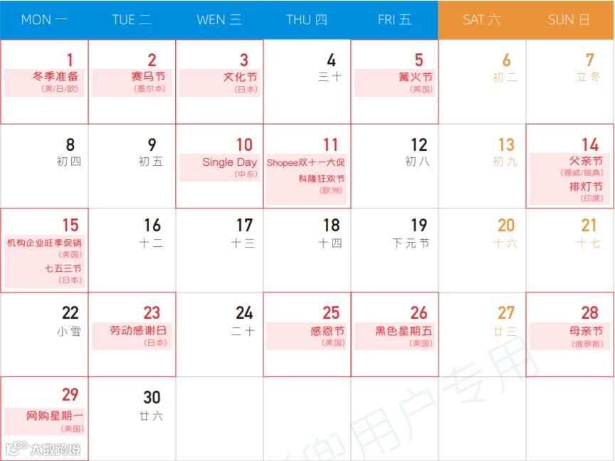 十一月全球营销热点预告 请您提前备货