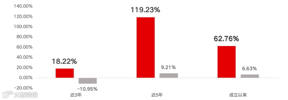 银华智荟内在价值灵活配置混合发起式A成立于2017年9月28日,2018年、2019年、2020年、2021年、2022年、自基金合同生效起至今的净值增长率依次为-36.99%、63.29%、68.90%、40.09%、-22.56%、62.76%,同期业绩比较基准收益率依次为-9.32%、20.09%、15.25%、-1.96%、-12.66%、6.63%。