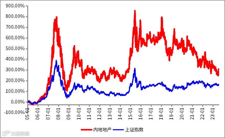 从长期业绩表现来看,中证内地地产主题指数自基日(2004.12.31)以来累计涨幅为286.58%,优于同期上证指数154.73%的收益表现。