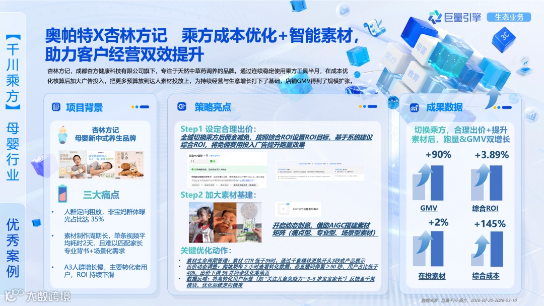 千川乘方开启测试以来,助力多个行业的代理商创新增长,实现经营效率的提升。我们整理了代理商使用千川乘方的优秀案例,拆解实战玩法与投放逻辑,为大家提供可参考的范本。