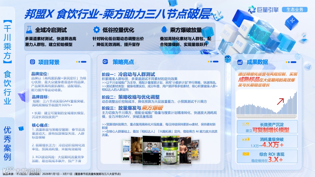 邦盟 x 某食饮品牌:千川乘方助力三八节点破层,沉淀增长模型