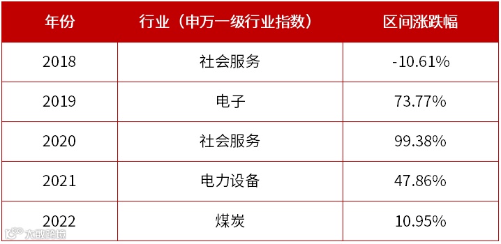 数据来源:Wind,统计区间:2018、2019、2020、2021、2022各个完整年度,行业分类按照申万一级行业分类,指数历史业绩表现不代表未来。