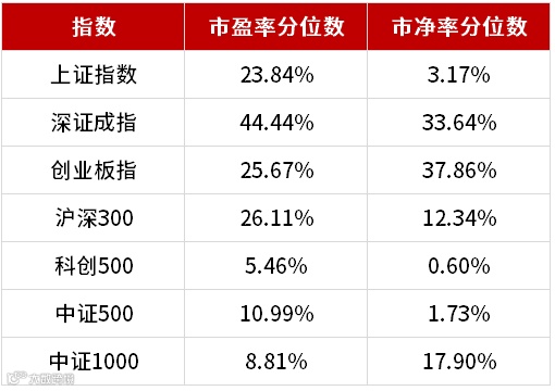 数据来源:Wind,截至2022.9.30;分位数统计区间为近十年(科创50、中证1000发布不满10年,统计区间为发布以来)