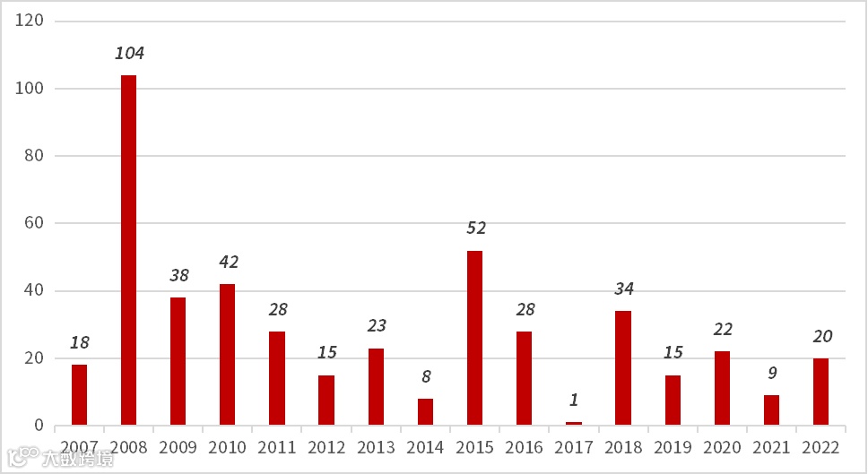 图为近15年来,每年上证指数连续3日下跌超过3%的天数。数据来源:Wind,2017.10.1-2022.9.30,上证指数区间年化收益率-4.08%;区间收益率(年化)=[(1+区间收益率)^(250/交易日天数)-1]*100%。