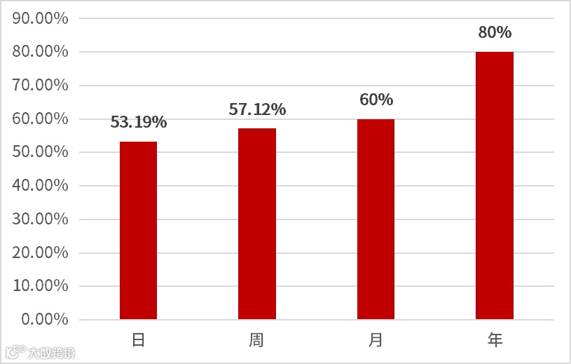 偏股混合型基金指数数据来源:Wind,2012.10.1-2022.9.30;上涨幅度为近十年对应周期的上涨单位的占比,其中日上涨占比=上涨的天数/总天数,周上涨占比=上涨周数/总周数,月上涨占比=上涨月数/总月数,年上涨占比=上涨年数/总年数。