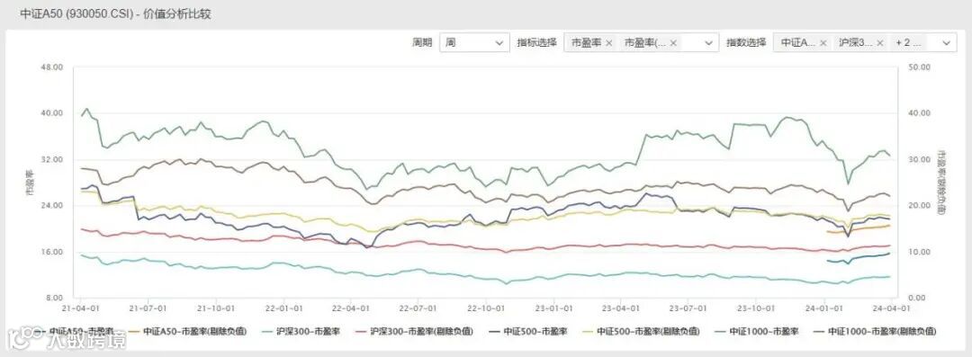 根据Wind数据,从估值来看,截至2024年3月29日,中证A50指数市盈率为15.67倍,相比中证500、中证1000等主流宽基指数更低 (中证500、中证1000市盈率分别为21.63倍、32.65倍)。且横向对比全球主要市场指数,中证A50指数估值和历史分位数均显著落后,全球比价视角下性价比凸显。