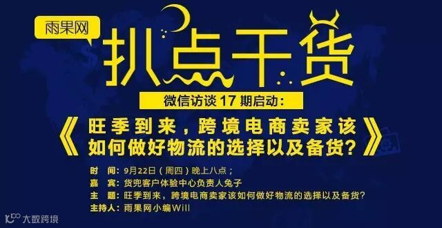 1、晚上8:00至8:40,由雨果网小编Will与货兜物流综合信息平台兔子通过私人微信进行访谈,并将访谈内容整理为文字发布到“雨果网出口电商物流交流群”中;