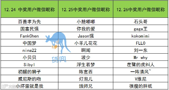 “圣诞来晒照,货兜杯子送一套”的中奖用户微信昵称,为及时给大家送上奖品,请大家看到后一定