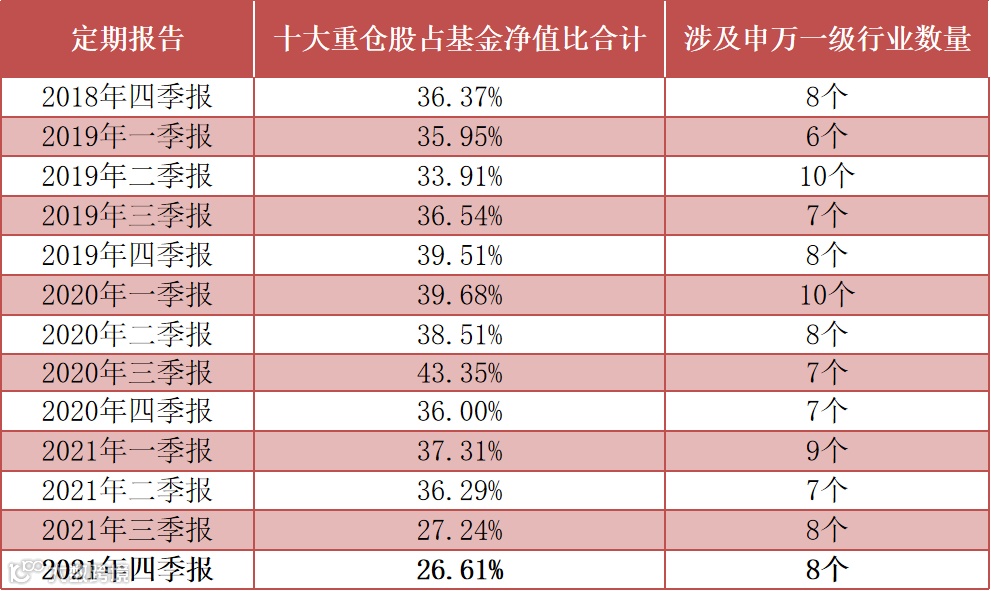 以银华鑫盛(LOF)A为例,自王海峰2018年10月10日任职以来至2021年12月31日,基金定期报告中的十大重仓个股比例在25%至45%的范围内,十大重仓股涉及的申万一级行业数量为6至10个。长期来看,王海峰行业分散、个股分散的程度都比较高,有利于规避单一个股/行业的大跌风险,以适应风格频繁变动的市场环境。
