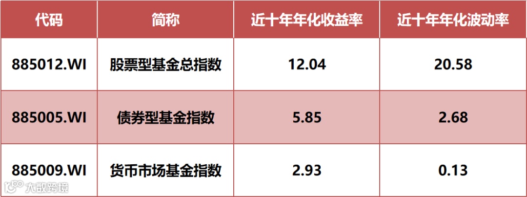 股票型、债券型、货币型基金指数的收益率VS波动率