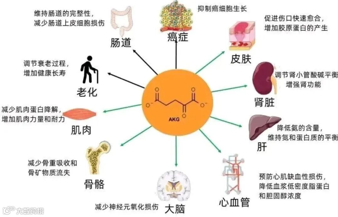 细胞能量危机随年龄增长而加剧:人体内AKG水平在40岁时仅剩25%,60岁时暴跌至12.5%。这一暴跌直接引发能量代谢紊乱,导致全身性衰老加速。