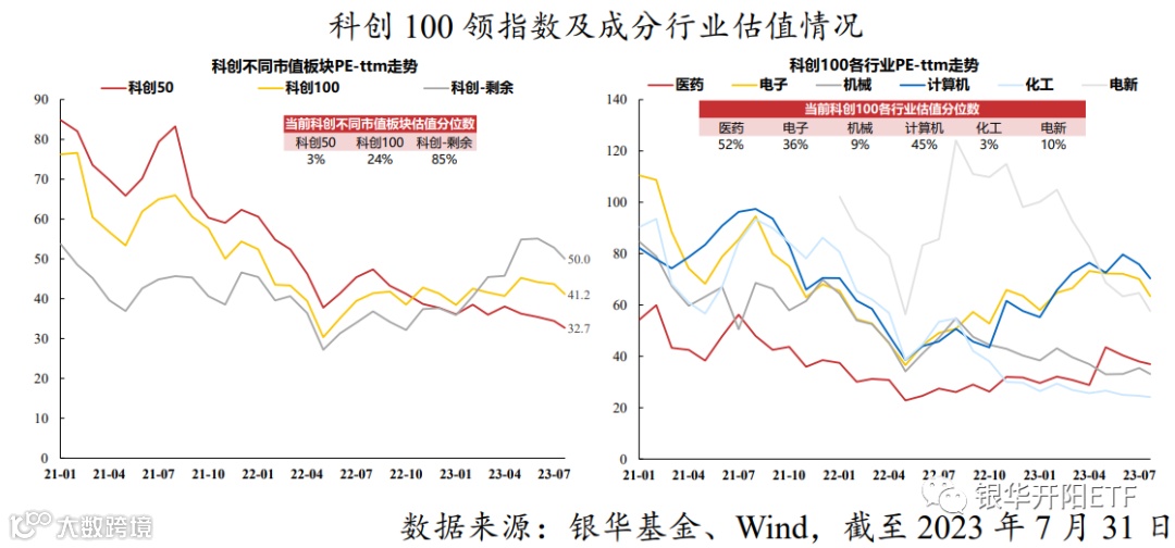 从估值角度看,当前剔除亏损企业后的科创100指数市盈率在40倍中枢水平震荡,2021年以来的估值分位数仅24%。细分行业上,科创100指数中计算机、电子等行业的估值处于中位,而机械、化工、电新等具备高成长空间的行业当前估值分位数尚不足10%。