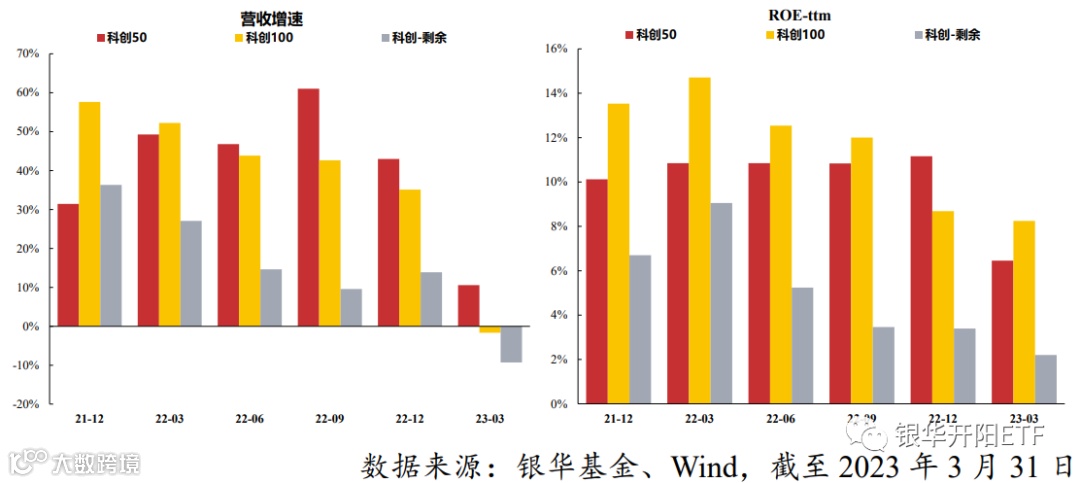 历史业绩看,科创100指数营收增长中枢在40%左右,与科创50指数并无明显差异。同时,科创100指数的盈利能力较为出色,净资产收益率一度超过科创50指数,ROE中枢约为10%,相较于科创板整体表现处于领跑地位。科创100指数成分股收入增长较快、盈利能力较强,是投资高科技成长企业的重要选择。