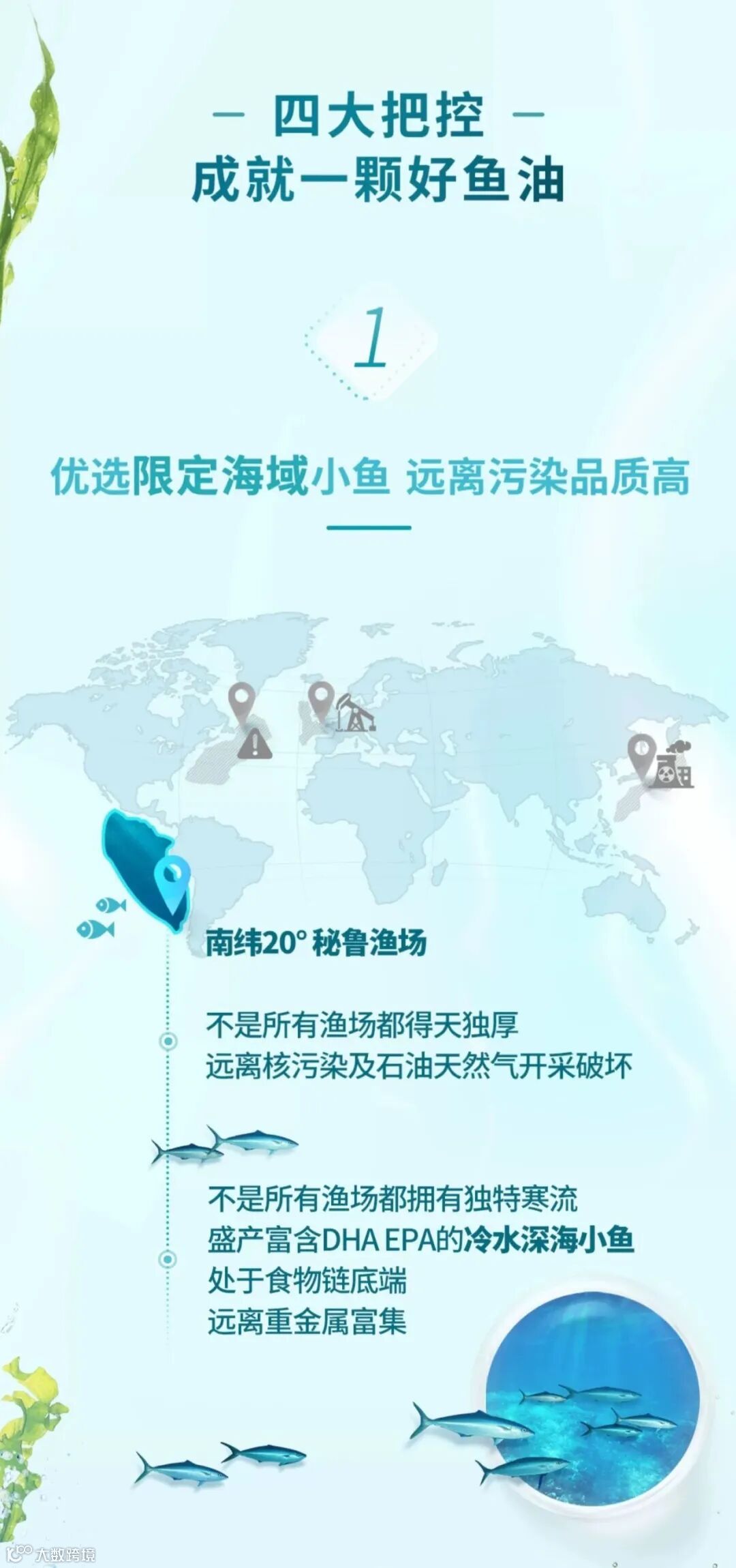 鱼油的原料取自秘鲁、摩洛哥等海域的冷水深海小鱼,远离污染海域及海洋杂质。