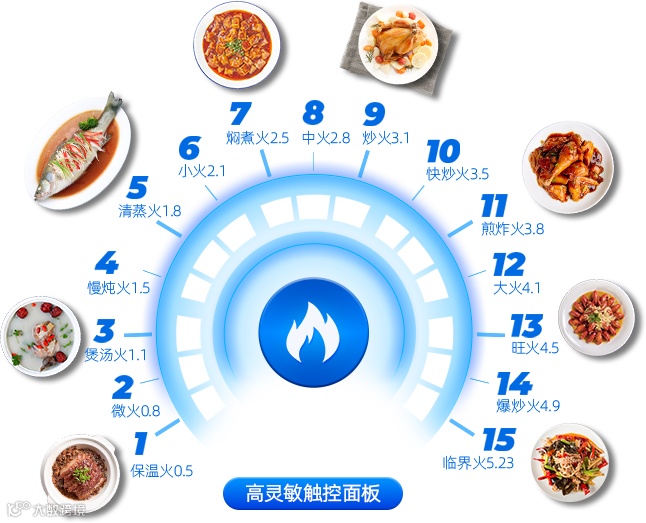 采用HI-touch精准触控,0.4-5.23kW的15档火力随意调节。