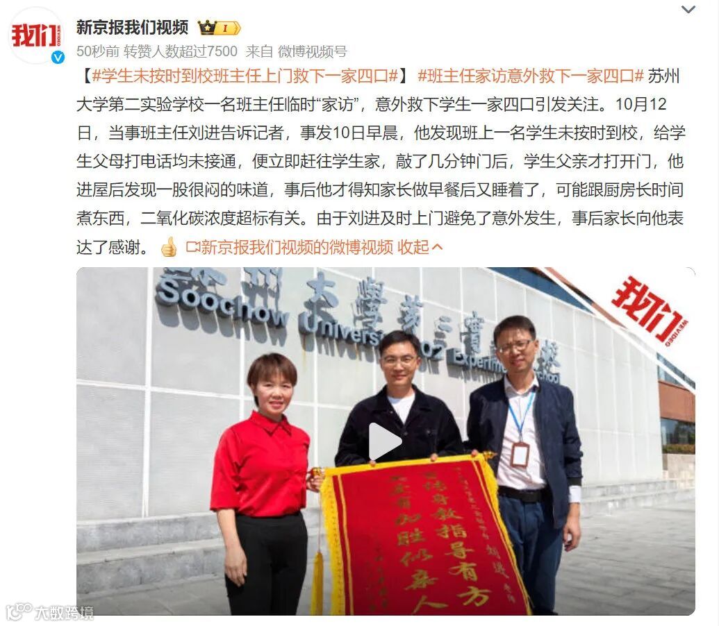 事情起因是班主任发现学生未按时到校,先后拨打父母的电话,都是关机的状态。他觉得事出异常,向学校报备完之后驱车前往学生家。