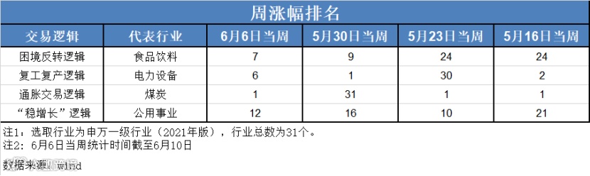 众多交易逻辑并非都会一直上涨,市场也会随着外围消息的刺激选择性的“投票”,各逻辑呈现出阶段性上涨的情况。Wind数据显示,不同的交易逻辑在最近四个交易周的涨幅此起彼伏,以电力设备板块为例,周涨幅排名不是靠前就是靠后。